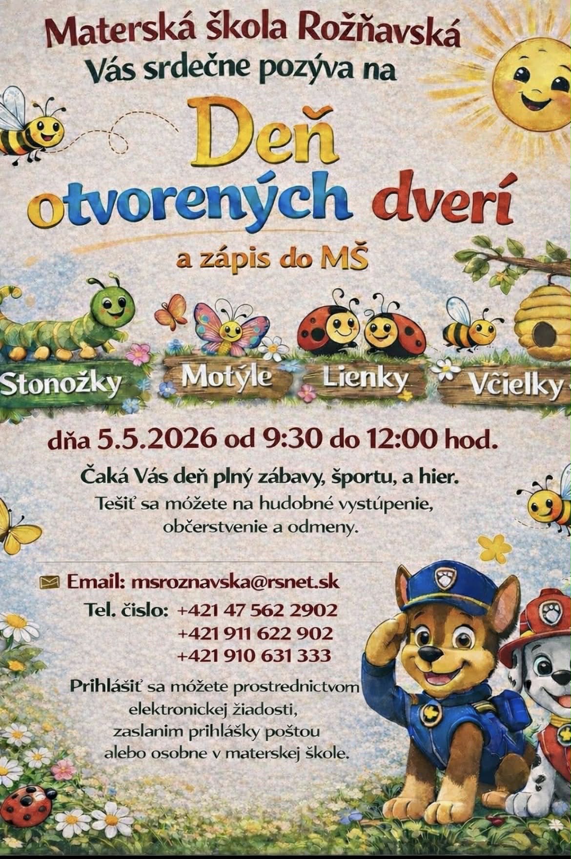 Z uvedeného podujatia budú zhotovované obrazové a zvukové záznamy v súlade s čl. 6 ods. 1 písm. f) Nariadenia EÚ o ochrane fyzických osôb pri spracúvaní osobných údajov. Bližšie informácie ohľadom spracúvania Vašich osobných údajov a Vášho práva namietať nájdete na https://www.msroznavska.sk/DOKUMENTY  alebo nás kontaktujte na tel. č. 0911622902, 0910631333