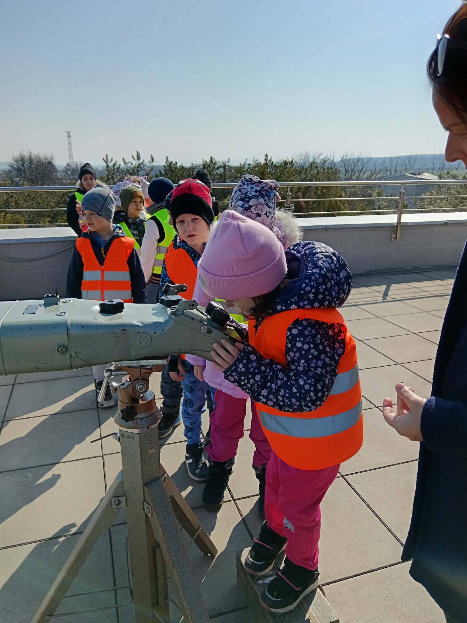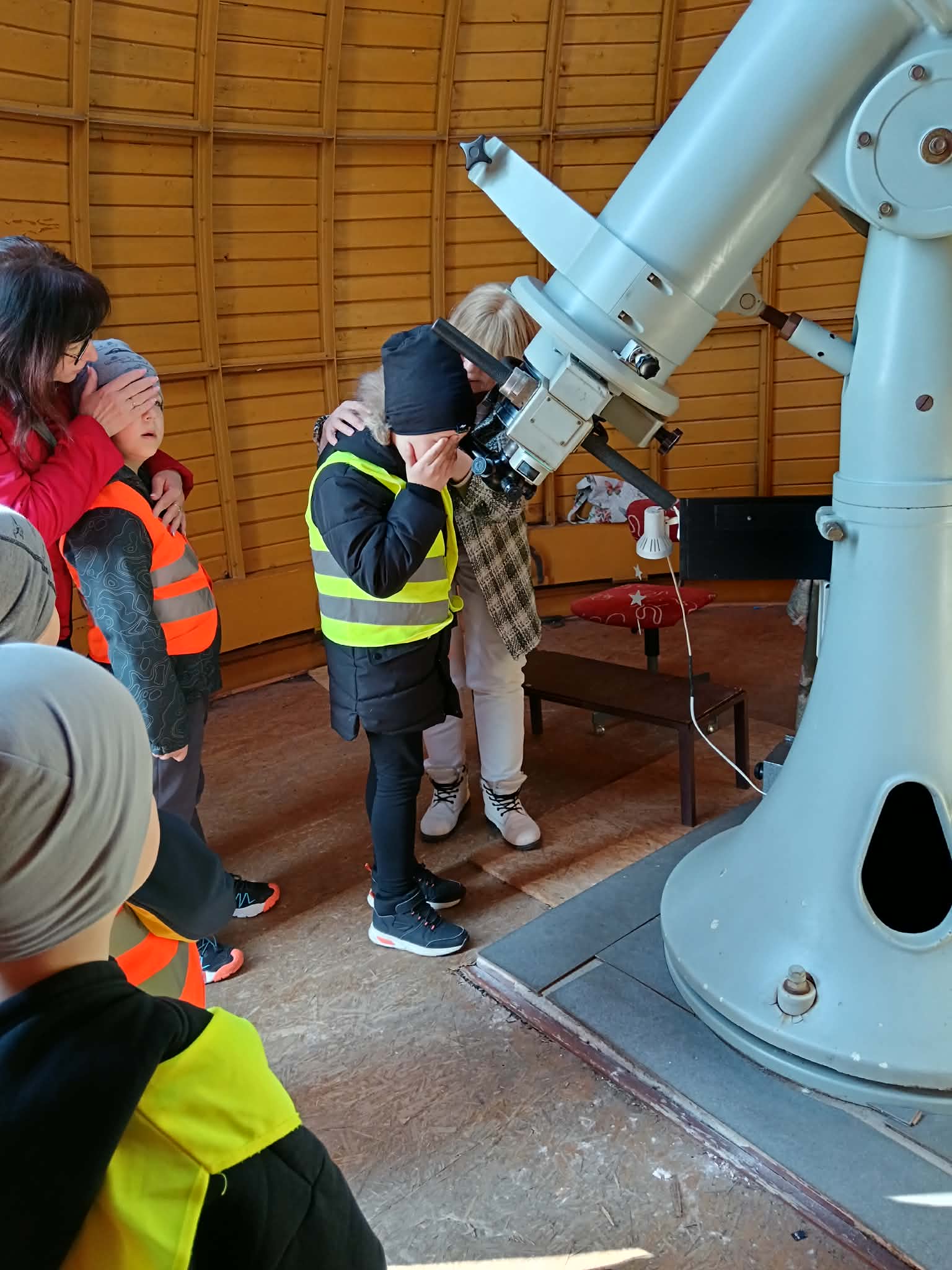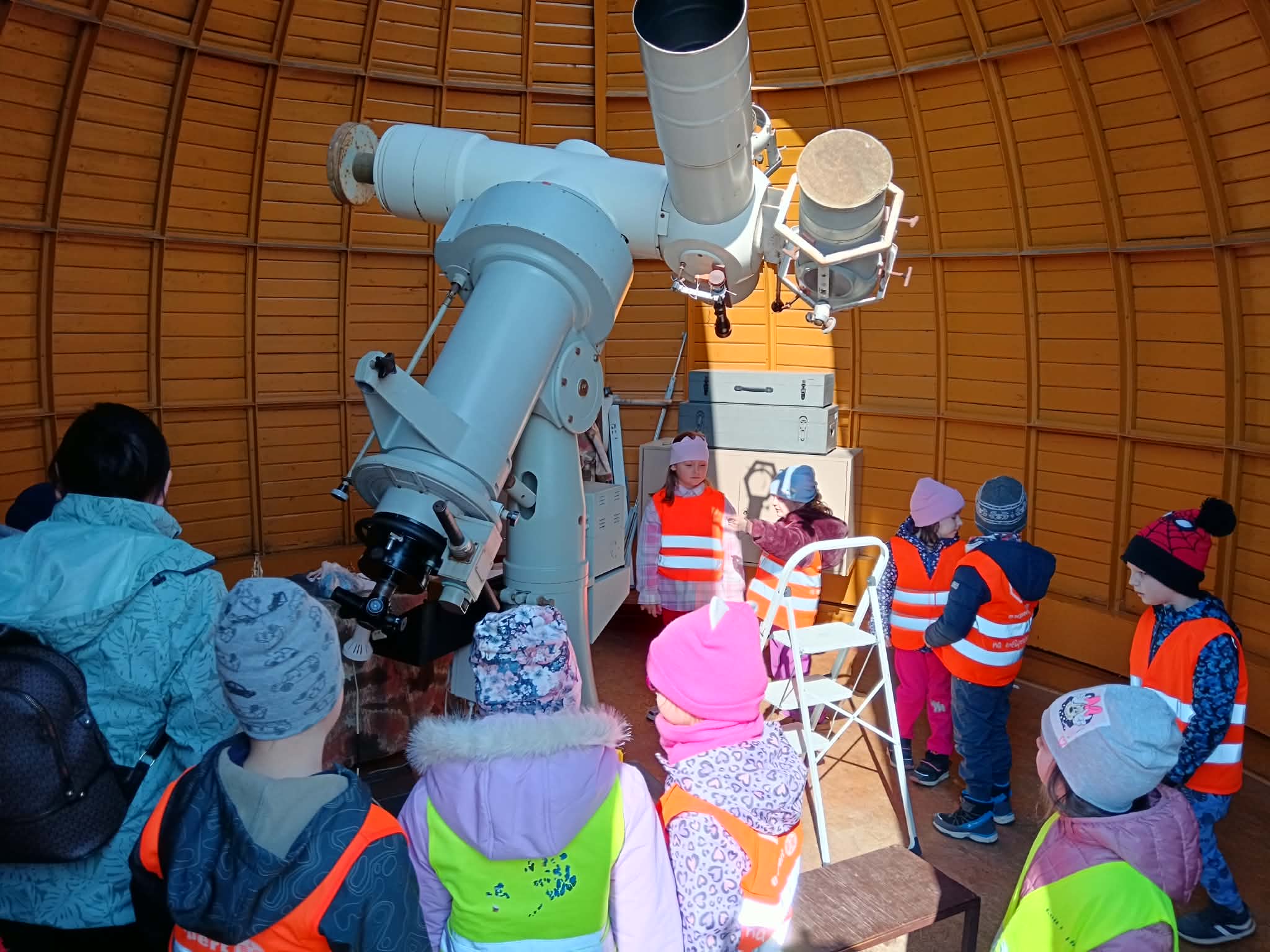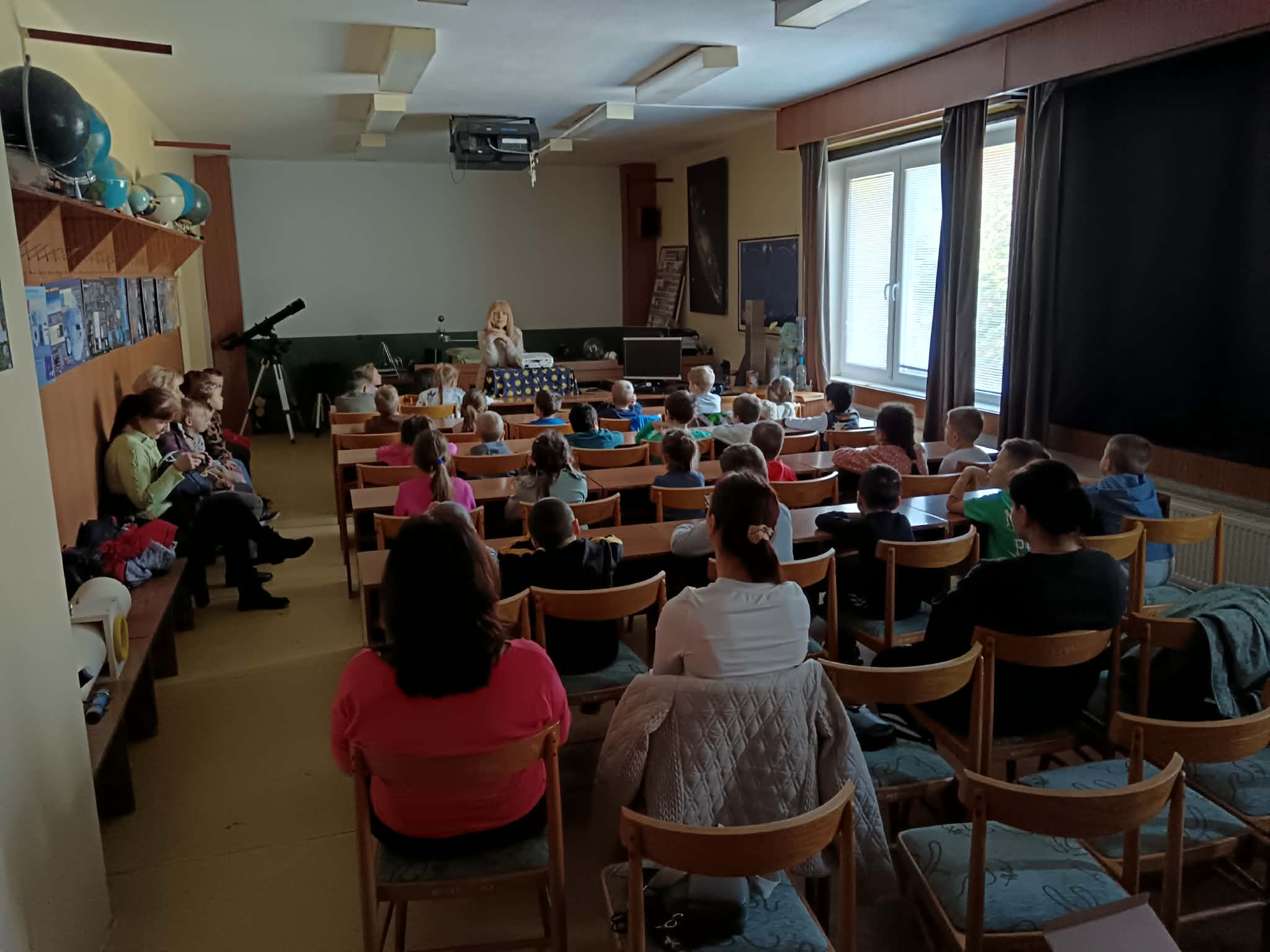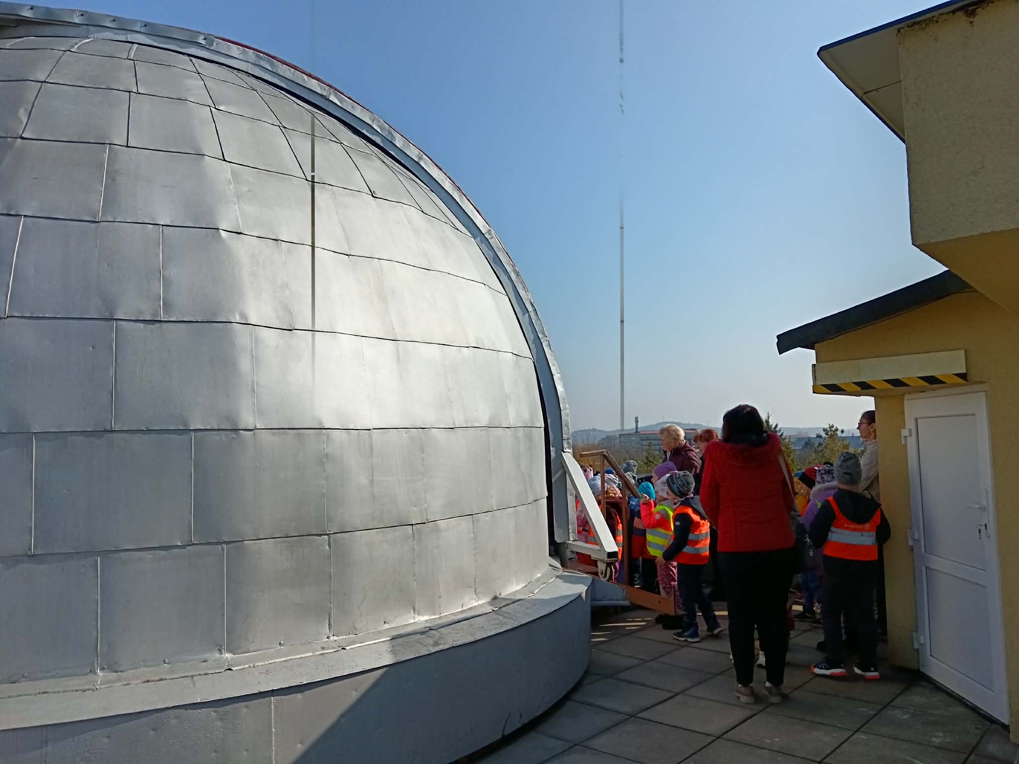 Deti z predškolských tried navštívili hvezdáreň, kde pozorovali krásu oblohy profesionálnou technikou – ďalekohľadom. Zábavnou formou im ukázali ako vidno vesmírne telesá na našej oblohe. Deti to veľmi zaujal, boli nadšené.